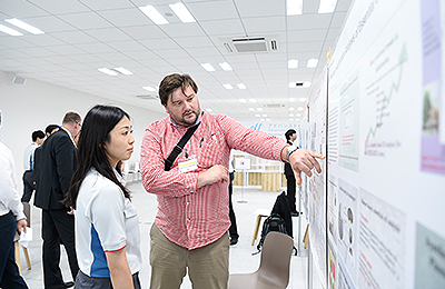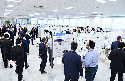 Following the initial round of speeches, the event moved on to the poster session, in which 57 guests and 15 Shimadzu employees showcased their research. The open layout of the session allowed for lively discussion between researchers from diverse fields. After voting by all participants, a panel of judges determined 6 award winners, who presented their research on the main stage the following day.