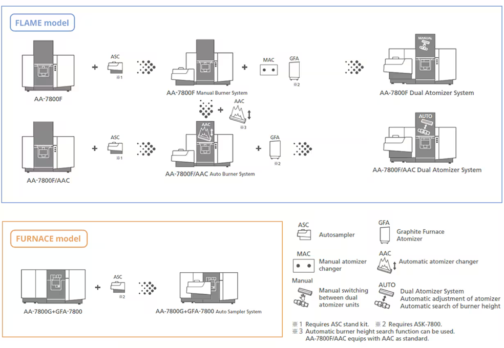 AA-7800F 시스템에 GFA-7800 흑연로 아토마이저를 추가하면, 화염과 흑연로 유닛 간의 수동 전환이 가능합니다.