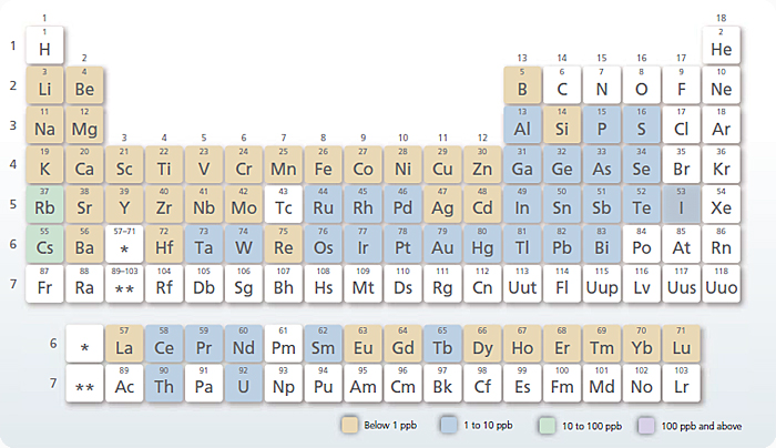 ICPE-9800 시리즈로 분석 가능한 원소들..