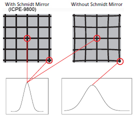 Schmidt 미러는 난시를 교정하는데 사용됩니다. Schmidt 미러가 사용되지 않는 분광계는 검출기 주변을 흐리게 하여 분해능과 감도를 감소시킵니다.