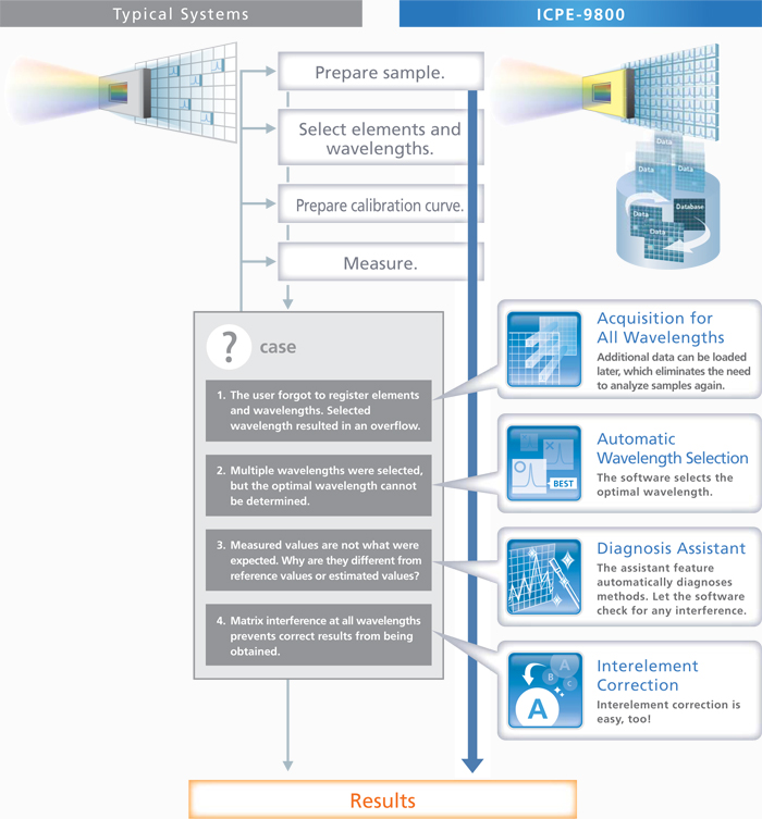 광범위한 스펙트럼 데이터를 실질적인 데이터베이스와 결합하는 ICPE-9800 시리즈의 Assistant 기능은 메소드를 쉽게 최적화하고 보다 간단하고 효율적인 분석 워크플로우를 가능하게 합니다.